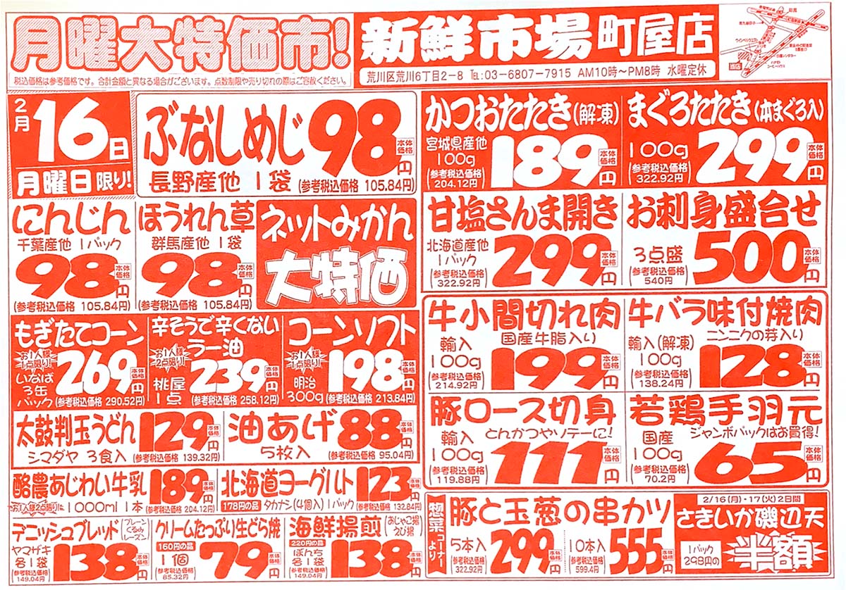 【町屋新鮮市場】激安スーパー、休業日変更・チラシのご案内まとめ